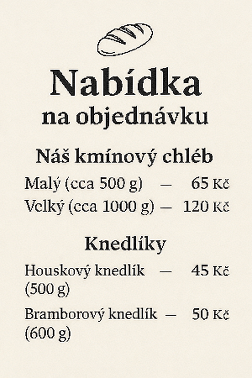 - Objednávky na chléb přijímáme do čtvrtka.
